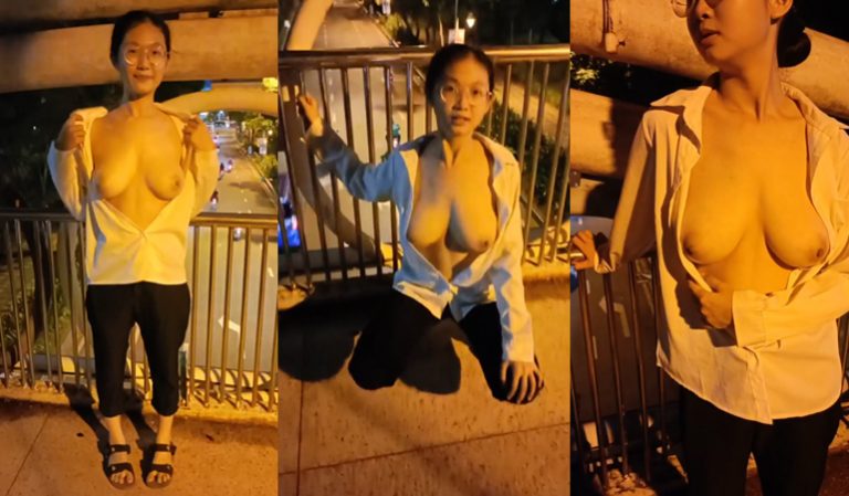 คลิปหลุดโอนลี่แฟนไทยแท้ แฟนสาวเปิดนมโชว์ บนสะพานลอยโคตรใจกล้า